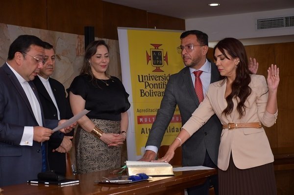 En ceremonia presidida por el rector de la UPB seccional Bucaramanga, Pbro. Gustavo Méndez Paredes, tomaron posesión como dignatarios del gobierno universitario, los decanos de las Escuelas de Ciencias Sociales y Economía, Administración y Negocios.